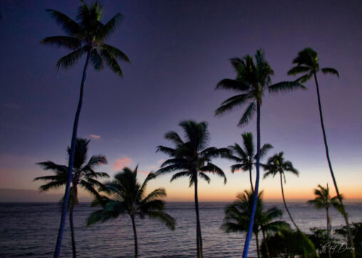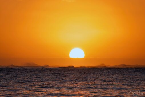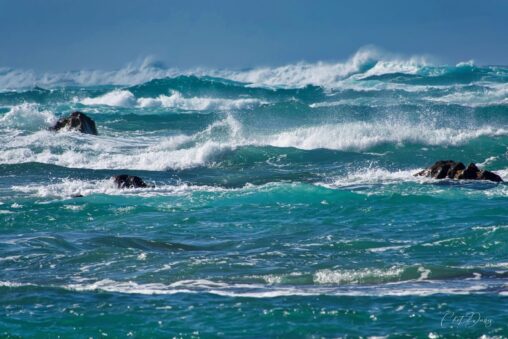 Last month on Oahu we walked the beach to enjoy the sunrise. In my long lens (telephoto) I noticed the wind whipping the waves off in the distance…