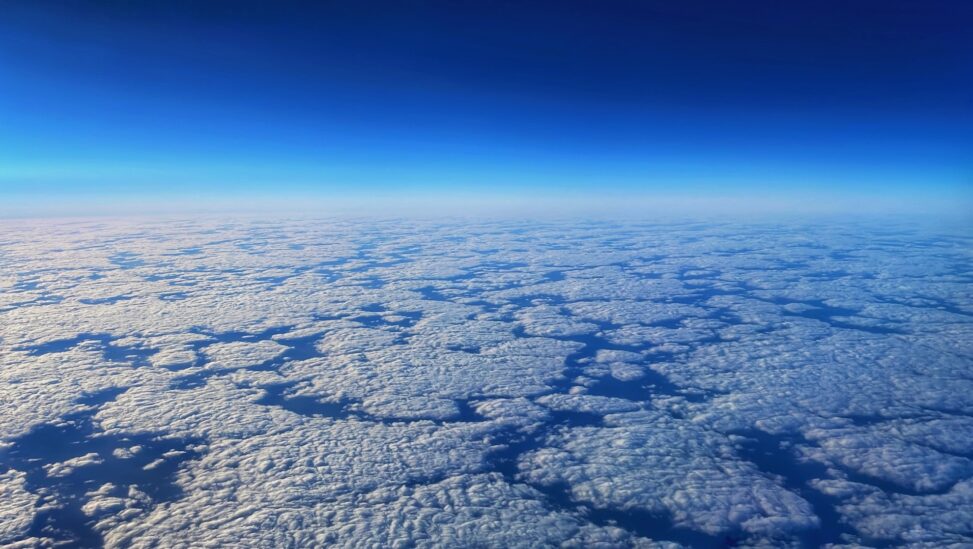 There is a peacefulness in the blue of the sky above and below with the patchy white clouds.