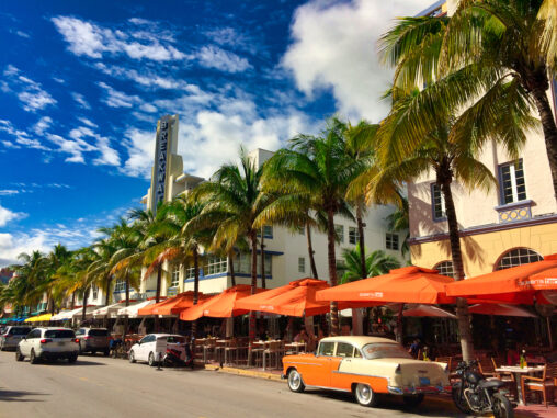 This photo captures the essence of South Beach Miami to me. I love the line of palm trees along Ocean Drive with The Breakwater hotel sign looming above…