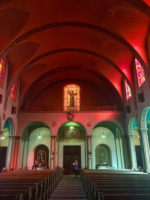 Visiting Mission Dolores in San Franciso the afternoon lit up the sanctuary with this red glow from the stained glass windows. I love the bold colors cast onto…